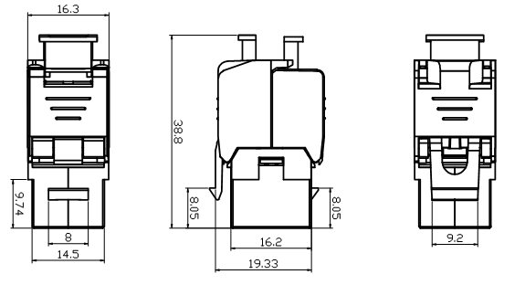 2. Metoda připojení: RJ45 Crystal Hlava 1 až 1 přímý typ. RJ45 Jack s jumperem, IDC ukončený horizontálním zapojením. Kontaktní kontakt přijímá technologii s vysokou a nízkou dislokací, která účinně snižuje hodnotu přeslechu na konci.