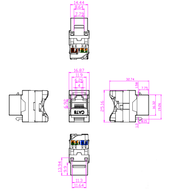 Klíčový jack Cat6 je kompatibilní s kabely CAT5E, CAT5 a CAT3, díky čemuž je vhodný pro modernizaci stávající kabelové infrastruktury.