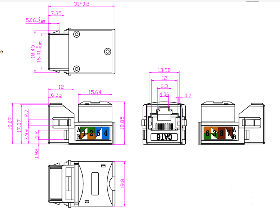 Klíčový jack Cat6 je typ klíčového jacku, který je navržen tak, aby podporoval standard Cat6 pro síť Ethernet. CAT6 (kategorie 6) je standardem pro kabelové a konektorové systémy, které jsou schopny rychlejší přenos dat a větší šířku pásma než předchozí standardy, jako jsou CAT5 a CAT5E.